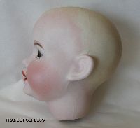 La tête de poupée coulée dans des moules en plâtre sort après la première cuisson au four très fragile comme une coquille d'oeuf. Elle est ponçée ensuite à l'aide d'un collant ou tissu très fin puis une seconde cuisson est nécessaire pour obtenir le vrai biscuit de porcelaine à la sortie du four après de longues heures de cuisson