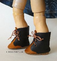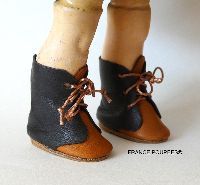 Bottines en cuir fin pour poupée ancienne Bleuette de 27cm ou pour poupées modernes "Boneka" de 25cm de l'Artiste Dianna Effner
