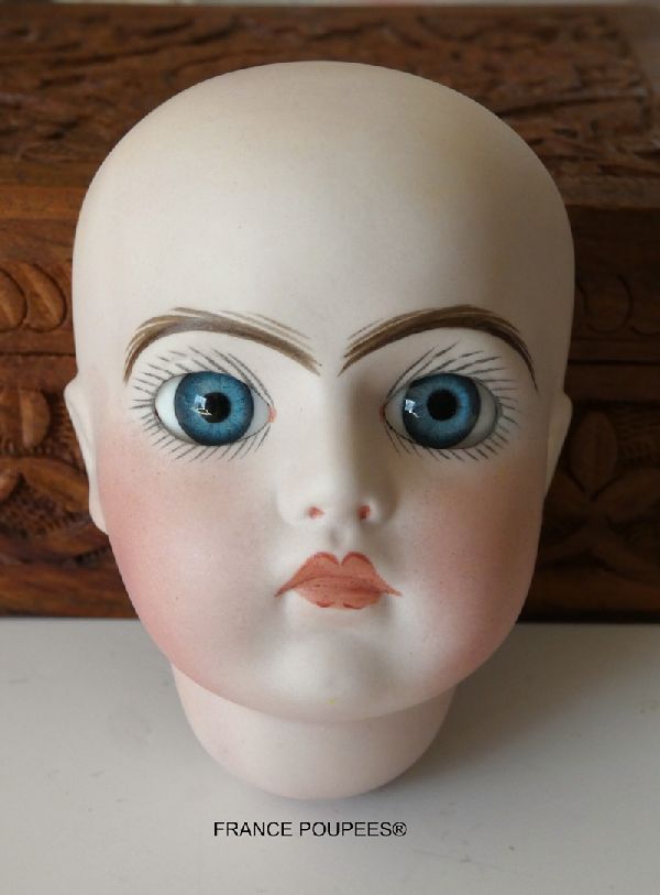 Infos utiles : toutes nos poupées et têtes sont faites à la main. Nous achetons des sachets de poudre à porcelaine que l'on mélange à de l'eau pour obtenir ensuite la pâte à porcelaine comme à l'ancienne en la filtrant au préalable pour éviter toute bulle à la cuisson. Aucune utilisation de porcelaine déjà préparée moderne en pot